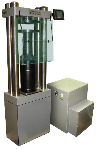 Пресс представляет собой программно-управляемую насосную установку с микропроцессорным блоком управления и испытательную станину с силовым двухсторонним плунжером.